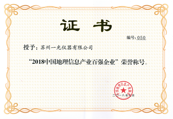 2018中國地理信息產(chǎn)業(yè)百強企業(yè)證書