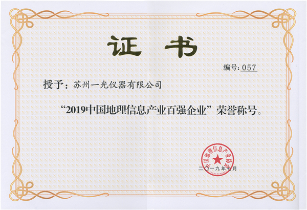 2019中國地理信息產(chǎn)業(yè)百強企業(yè)證書