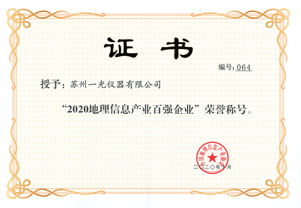 2020中國地理信息產(chǎn)業(yè)百強企業(yè)證書