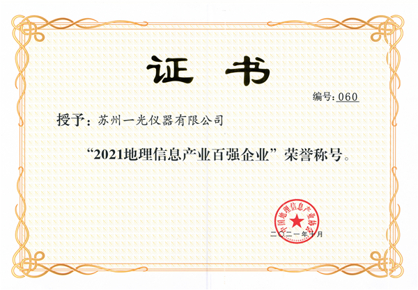 2021中國地理信息產(chǎn)業(yè)百強企業(yè)證書