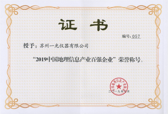 蘇州一光:再次榮獲“中國地理信息產業百強企業”